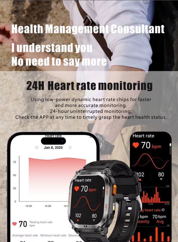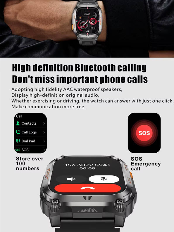 ⏰ توابع متنوع: ساعت زنگدار، ردیاب خواب، ردیاب تناسب اندام، شمارنده مسافت، گامشمار، ردیاب کالری، ردیاب ورزشهای چندگانه، یادآوری تماس و پیام، شمارهگیری، کنترل از راه دور، قطبنما، پخش موسیقی، دکمه SOS، ماشین حساب و دستیار صوتی هوش مصنوعی.
