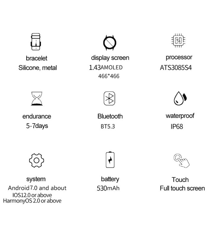 🖥 صفحهنمایش AMOLED 1.43 اینچ با وضوح فوقالعاده 466×466 و قابلیت Always-On Display
