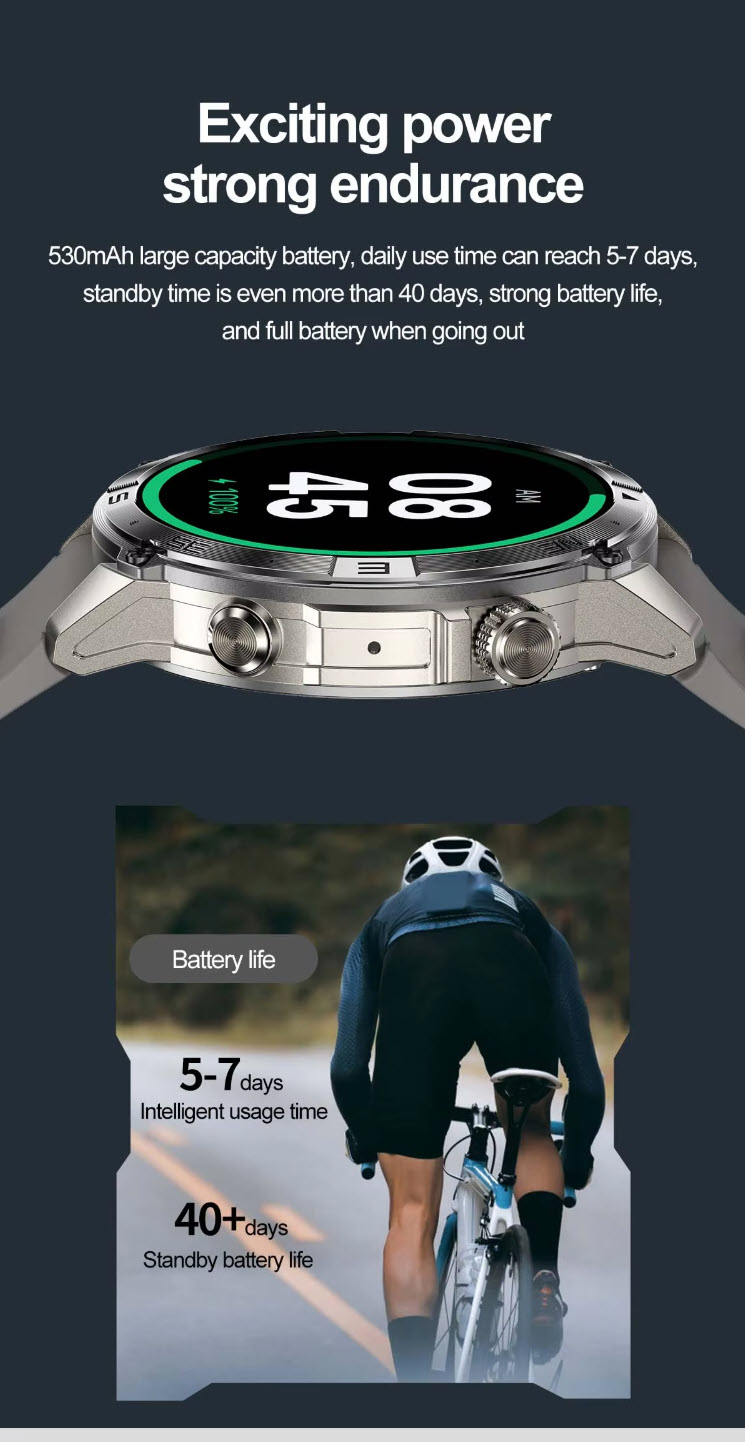 🔋 باتری قدرتمند 530mAh با عمر 7 تا 10 روز استفاده عادی و تا 40 روز حالت آمادهبهکار