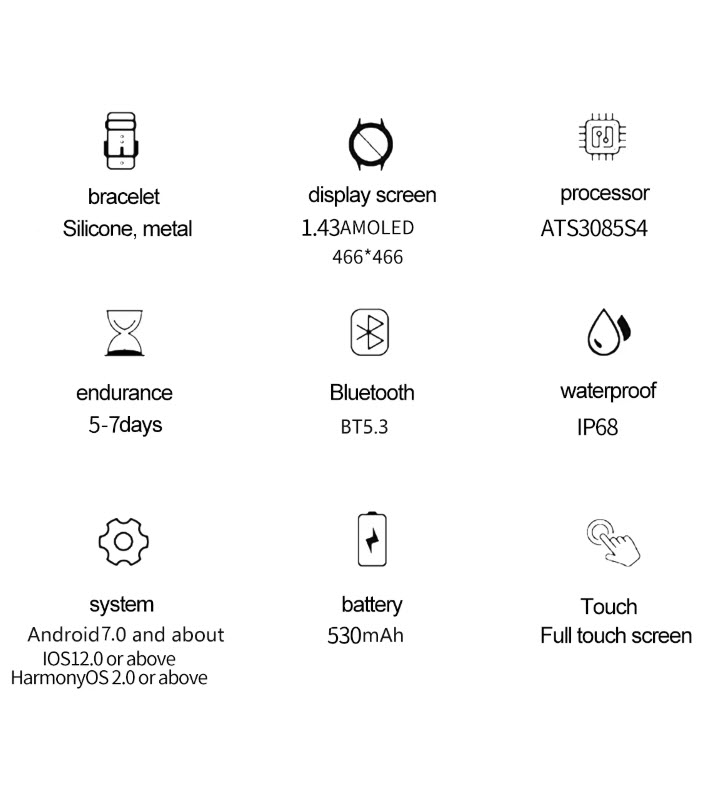 🖥 صفحهنمایش AMOLED 1.43 اینچ با وضوح فوقالعاده 466×466 و قابلیت Always-On Display